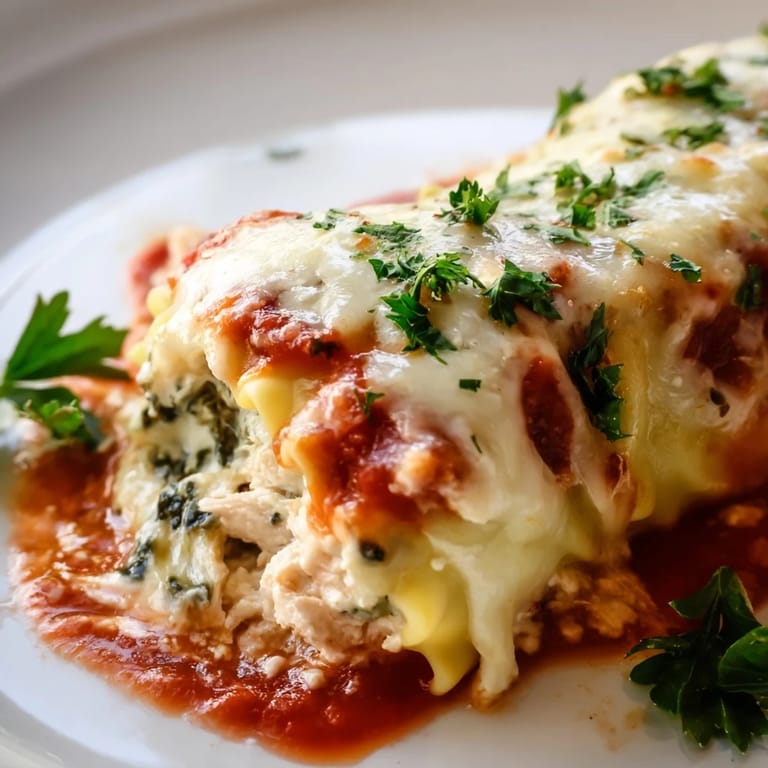 Save My kitchen counter was covered in flour and half-cooked noodles when I realized I'd bought way too many lasagna sheets for a regular tray. Instead of stacking them the usual way, I decided to roll each one with the filling tucked inside like little bundles. The chicken and spinach mixture held together beautifully, and when they came out of the oven, golden and bubbling, I knew I'd stumbled onto something worth repeating. Now, whenever I'm craving lasagna but want something a little more elegant and portion-friendly, these rolls are my go-to.