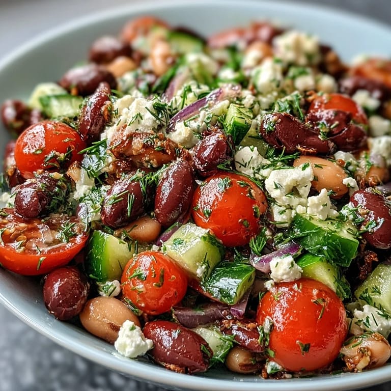 Save I opened three cans of beans one Sunday afternoon with no real plan, just a hunch that something bright and cold would taste better than anything hot. The lemon I'd bought days earlier sat on the counter, slightly wrinkled but still fragrant when I rolled it under my palm. I whisked the dressing in a chipped bowl, tasted it off my fingertip, and knew immediately this was going to work. By the time I tossed in the cucumbers and olives, the kitchen smelled like a taverna by the sea. That salad became my go-to whenever I needed something that felt like sunshine on a plate.