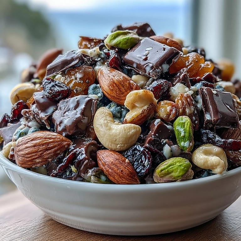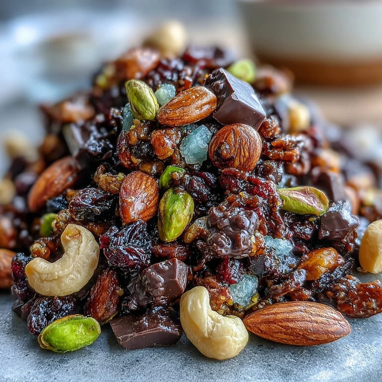Save The scent of toasted nuts always reminds me of late summer afternoons when my kitchen windows are open and sea breeze mingles with something delicious in progress. Trail mix became a staple by accident, after I found myself foraging for a satisfying snack just before heading out to the shore. There’s an unpredictable delight in mixing handfuls of whatever’s at hand—nuts, dried fruit, a few dark chocolate chunks—watching colors and textures collide. It’s a recipe I’ve refined through tiny tweaks and sudden cravings, making every batch a little different. Even now, the ritual of tossing everything together feels both indulgent and playful.